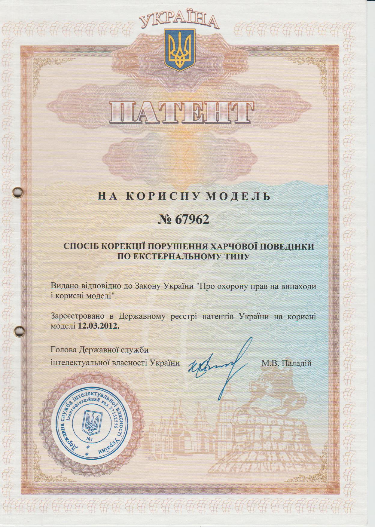 Пат. 67962 Україна. Спосіб корекції харчової поведінки по екстернальному типу / В. І. Шебанова; Державний департамент інтелектуальної власності від 12.03.2012.