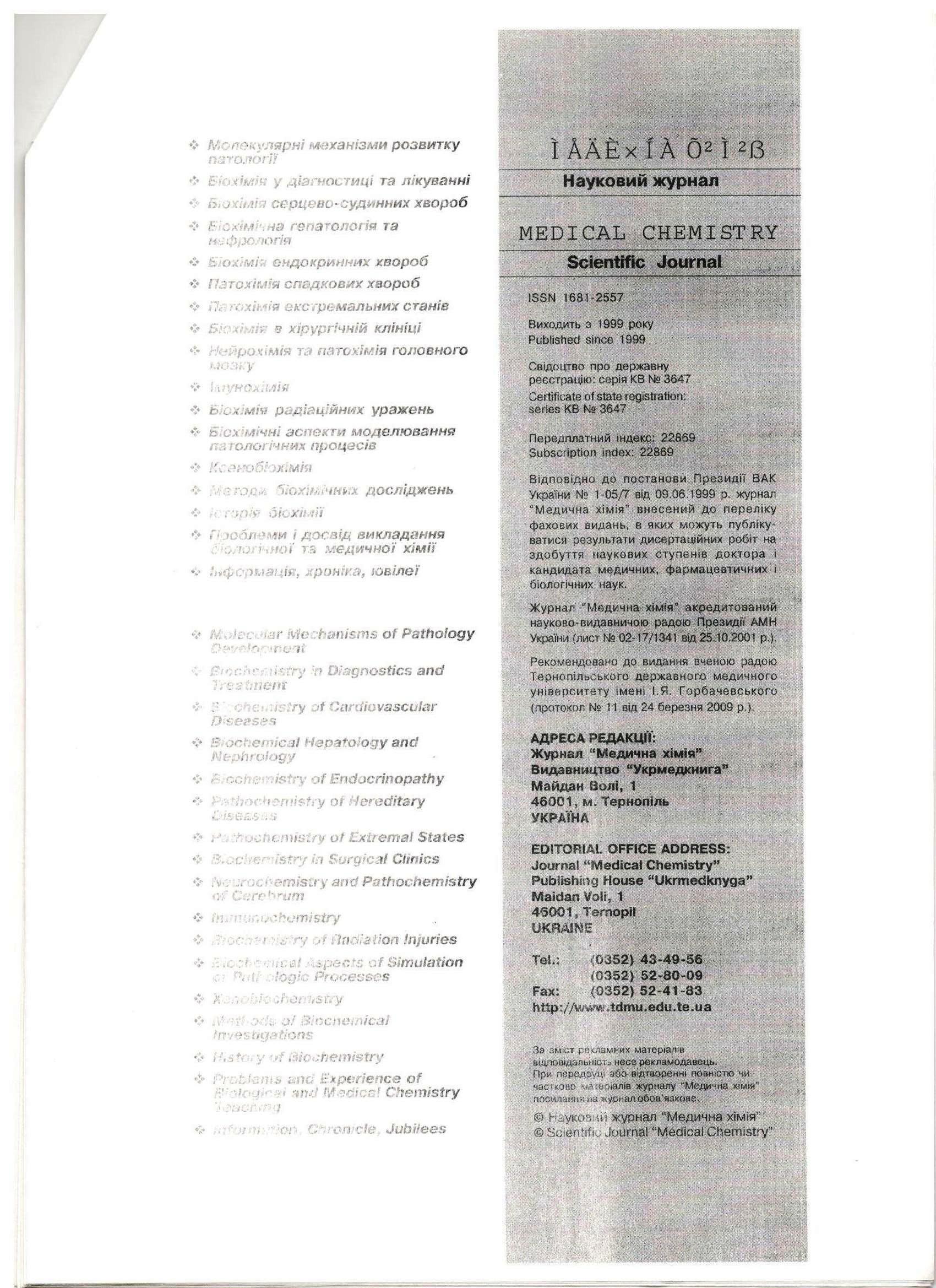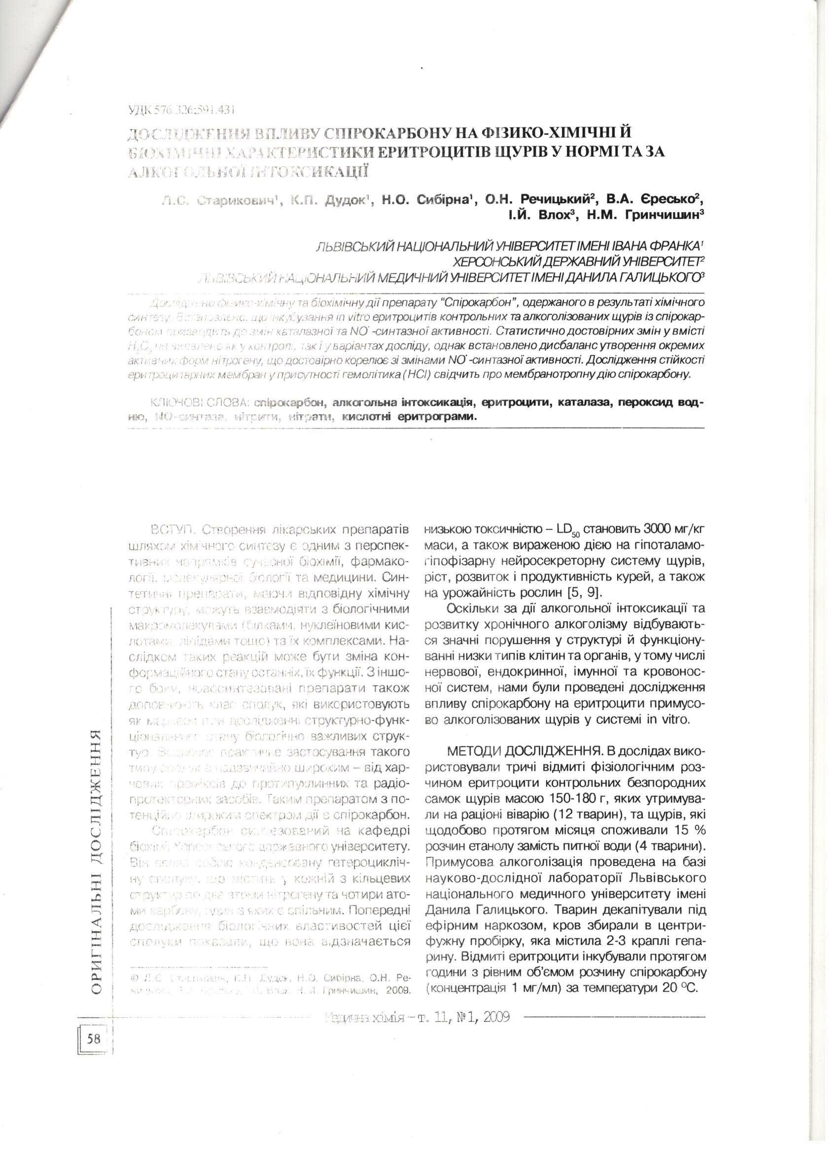 Речицький, О. Н. Дослідження впливу спірокарбону на фізико-хімічні та біохімічні характеристики щурів у нормі та за алкогольної інтоксикації / Л. С. Старикович, К. П. Дудок, Н. О. Сибірна, О. Н. Речицький, В. А. Єресько, І. Й. Влох, Н. М. Гринчишин // Медична хімія / ред. : проф. Ю. Вермінт та ін. – 2009. – Т. 11, № 1. – С. 58-62.