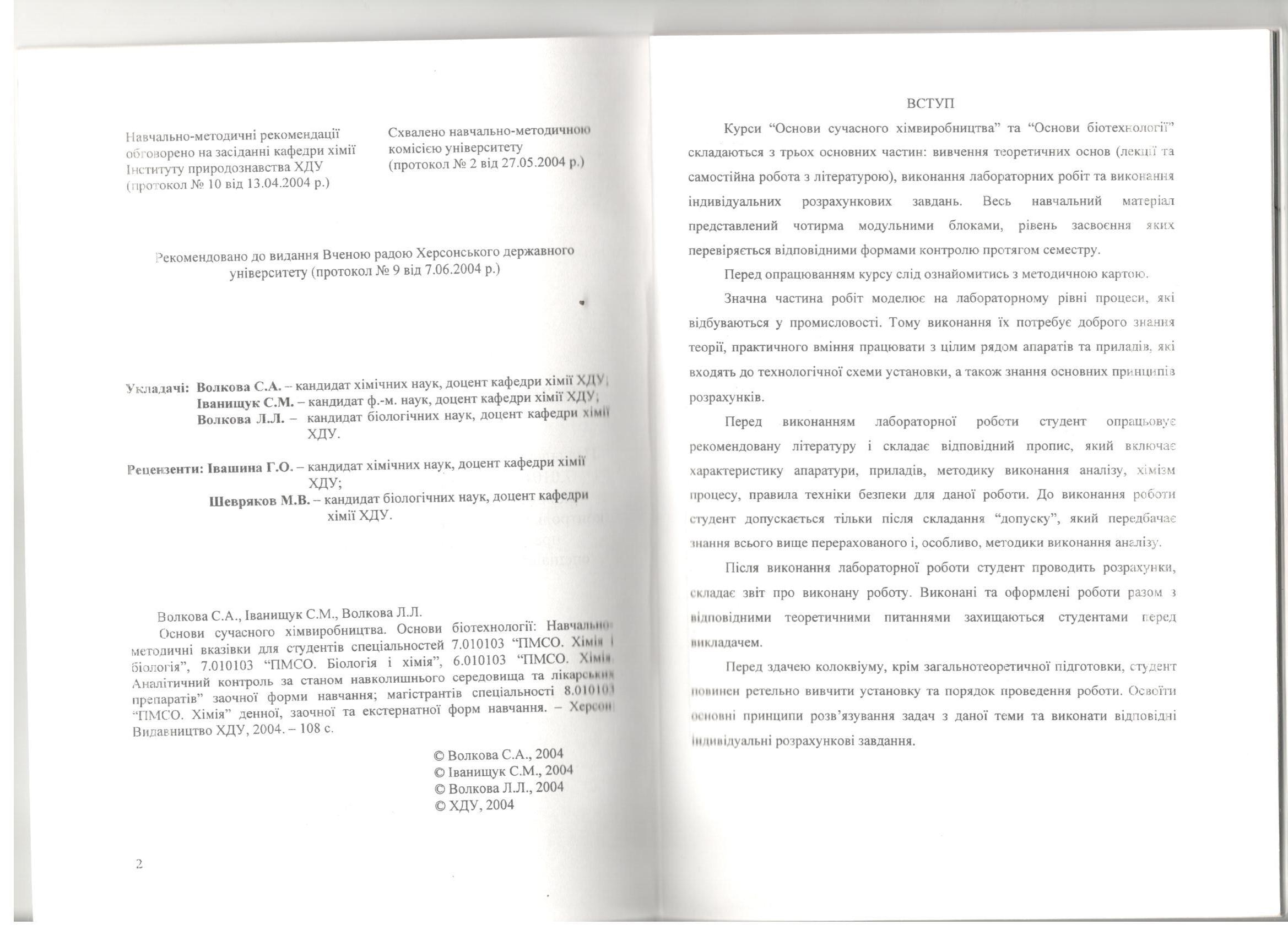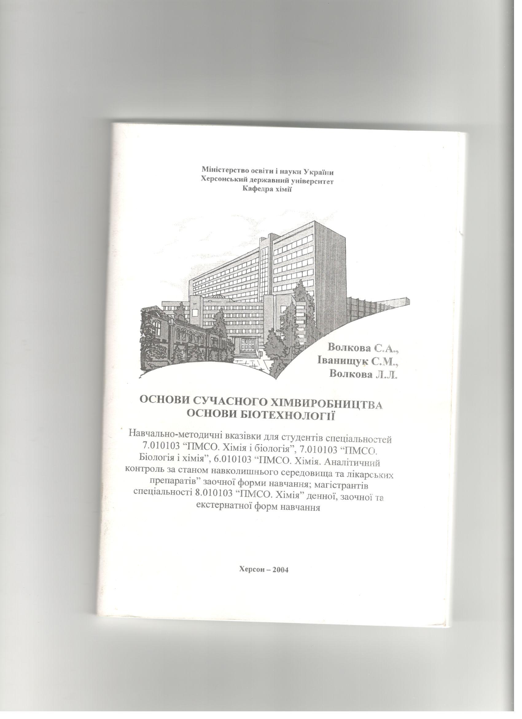 Волкова, (Пилипчук) Л. Л. Основи сучасного хімвиробництва. Основи біотехнології / С. А. Волкова, С. М. Іванищук, Л. Л. Волкова . – Херсон : ХДУ, 2004. – 108 с.