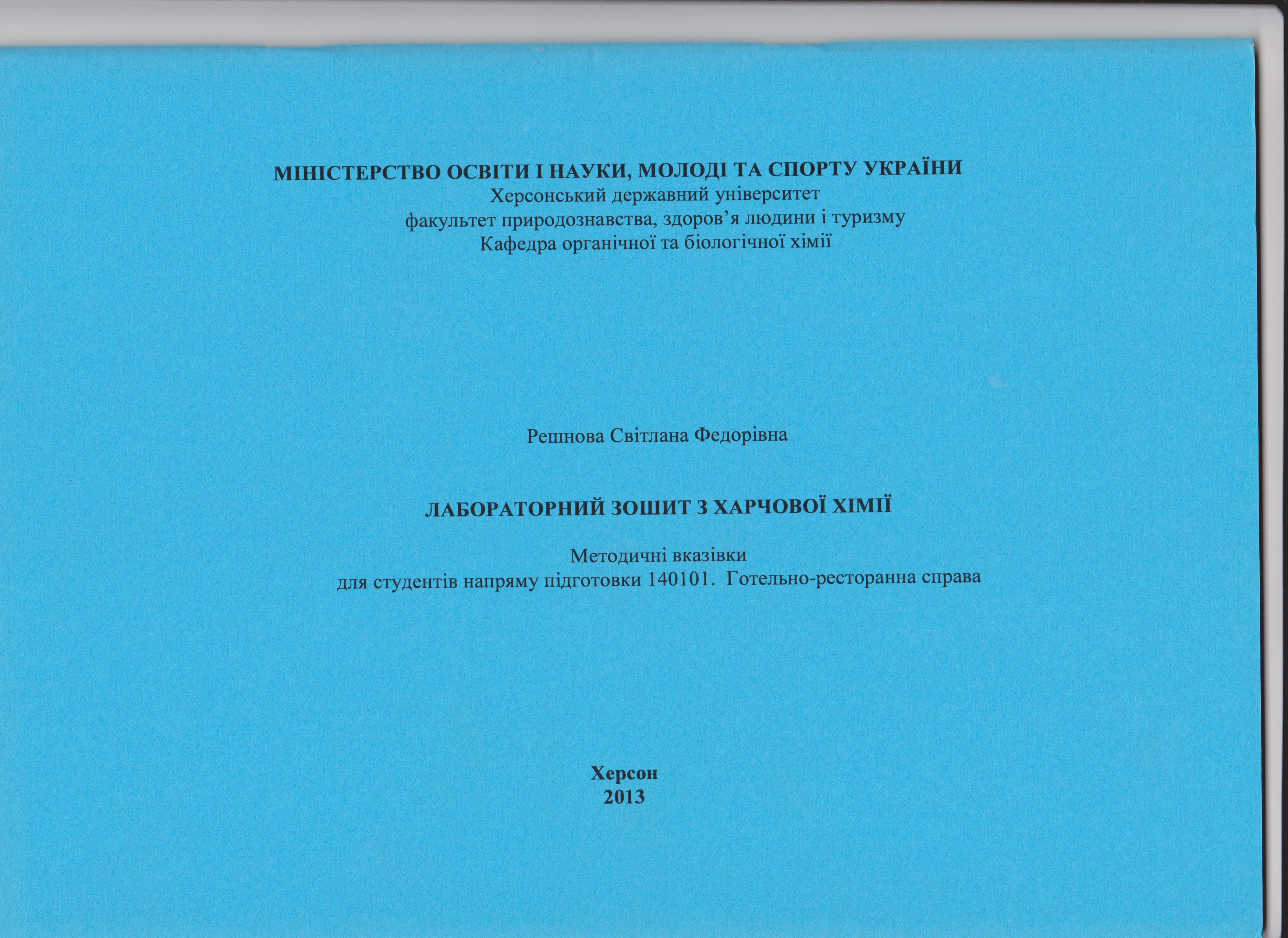Решнова, С. Ф. Лабораторний зошит з харчової хімії [Текст] : метод. рекомендації / С. Ф. Решнова. – Херсон : ПП Вишемирський В. С., 2013. – 75 с.