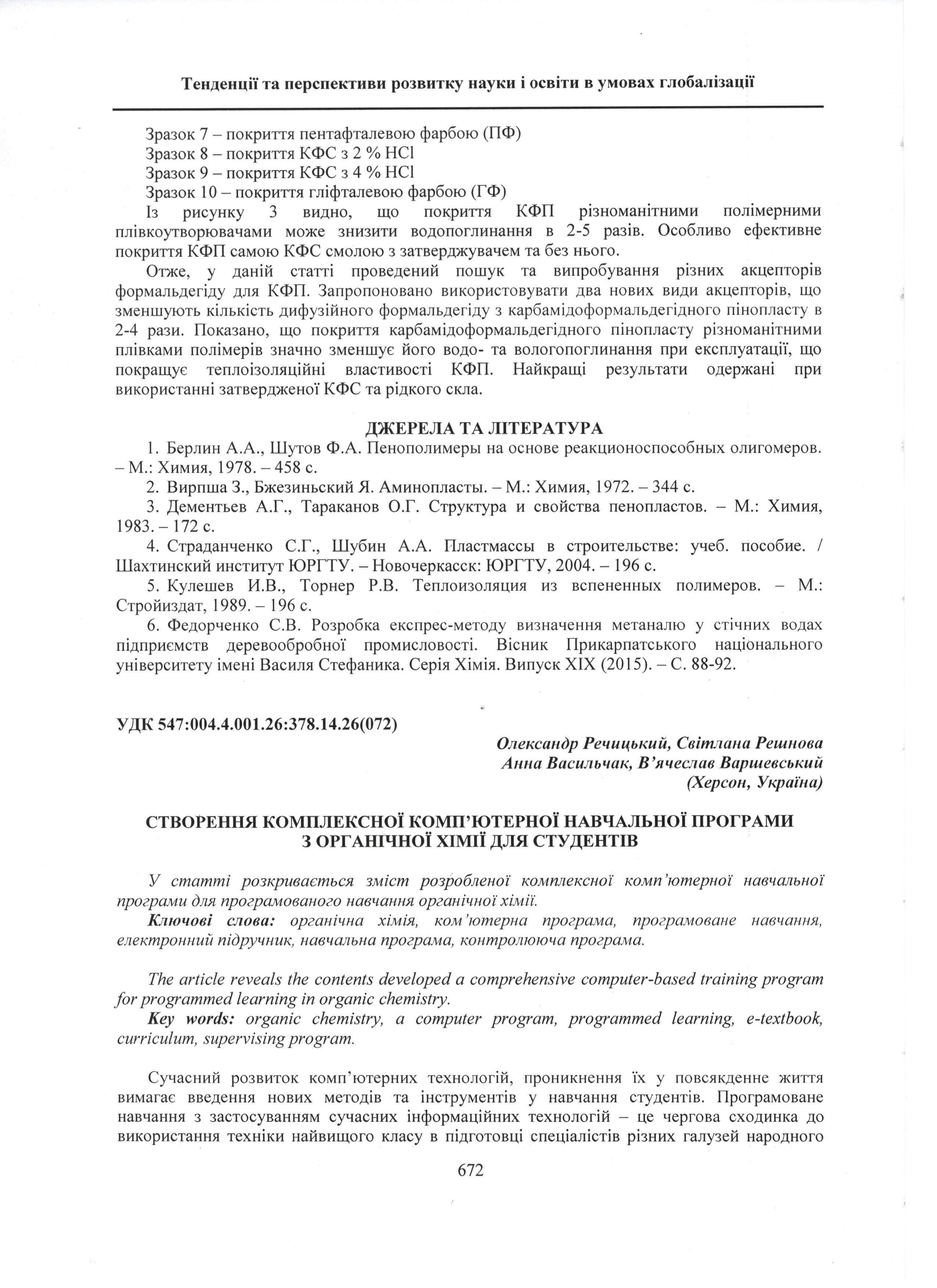 СТВОРЕННЯ КОМПЛЕКСНОЇ КОМП’ЮТЕРНОЇ НАВЧАЛЬНОЇ ПРОГРАМИ З ОРГАНІЧНОЇ ХІМІЇ ДЛЯ СТУДЕНТІВ