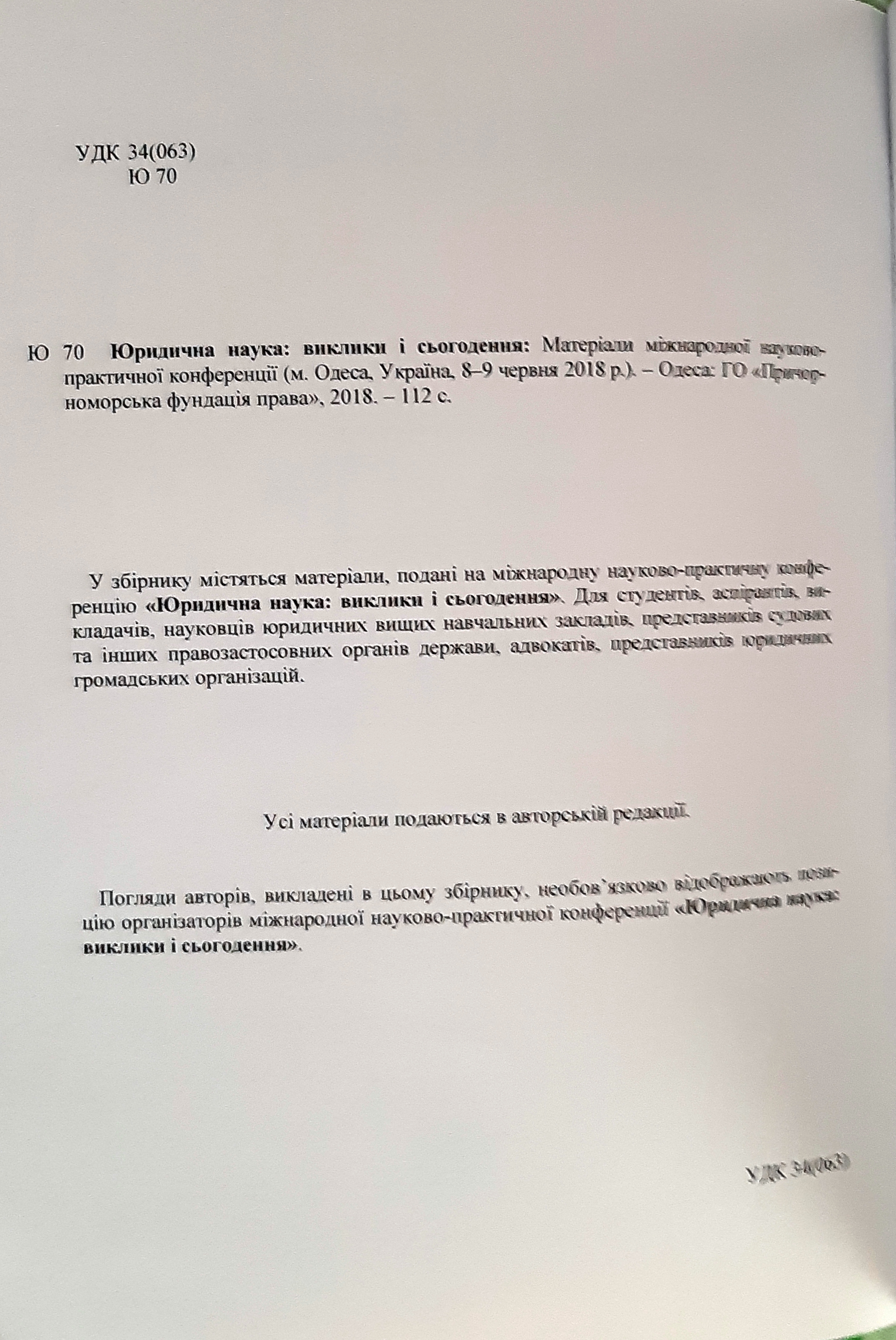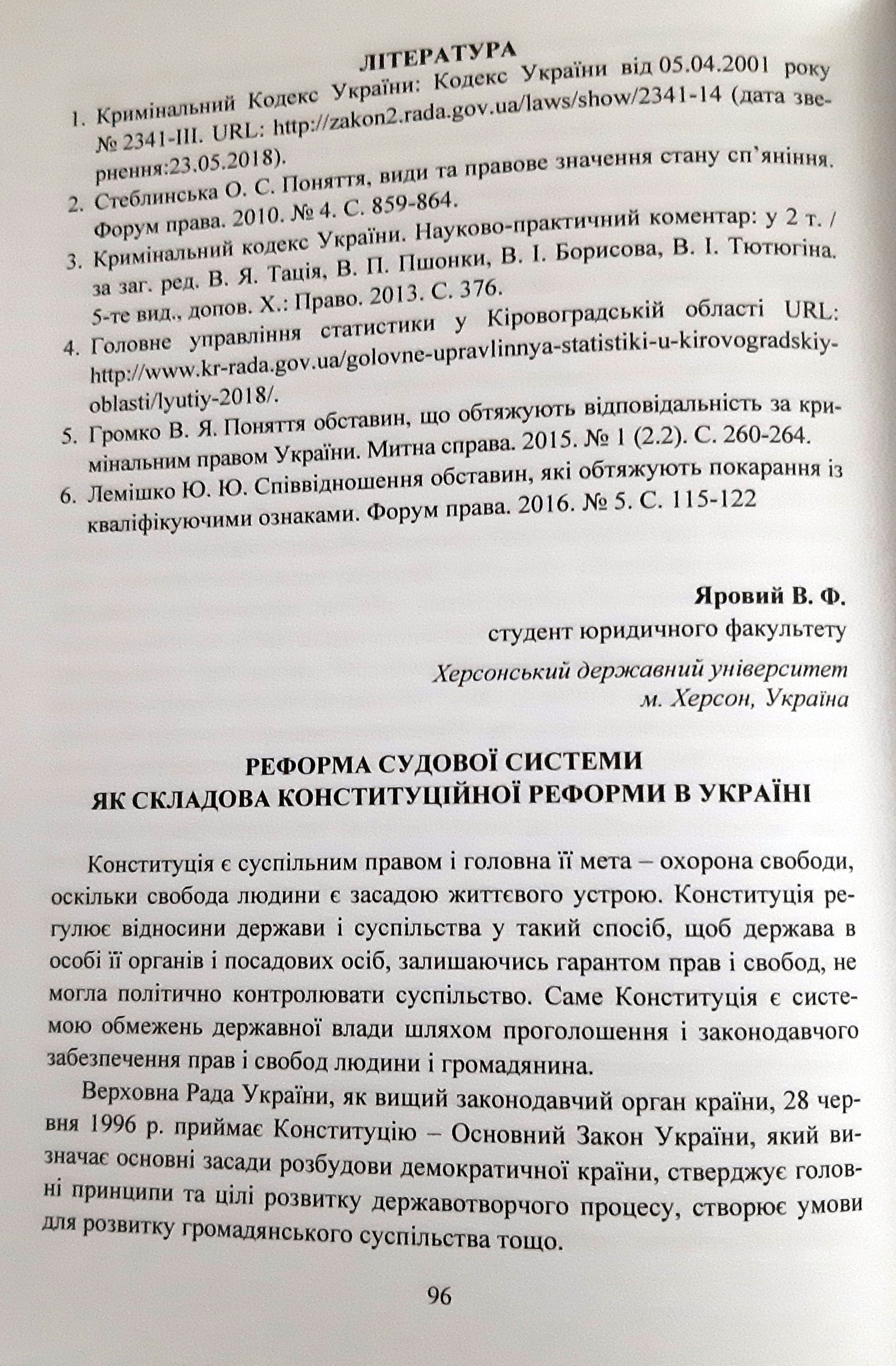 Яровий, В. Ф. Реформа судової системи як складова конституційної реформи в Україні / В. Ф. Яровий // «Юридична наука : виклики і сьогодення» : матер. міжн. наук.-практ. конференції (м. Одеса, 8-9 червня 2018 р.). - Одеса. – «Причорноморська фундація права». – 2018. – С. 96-99.