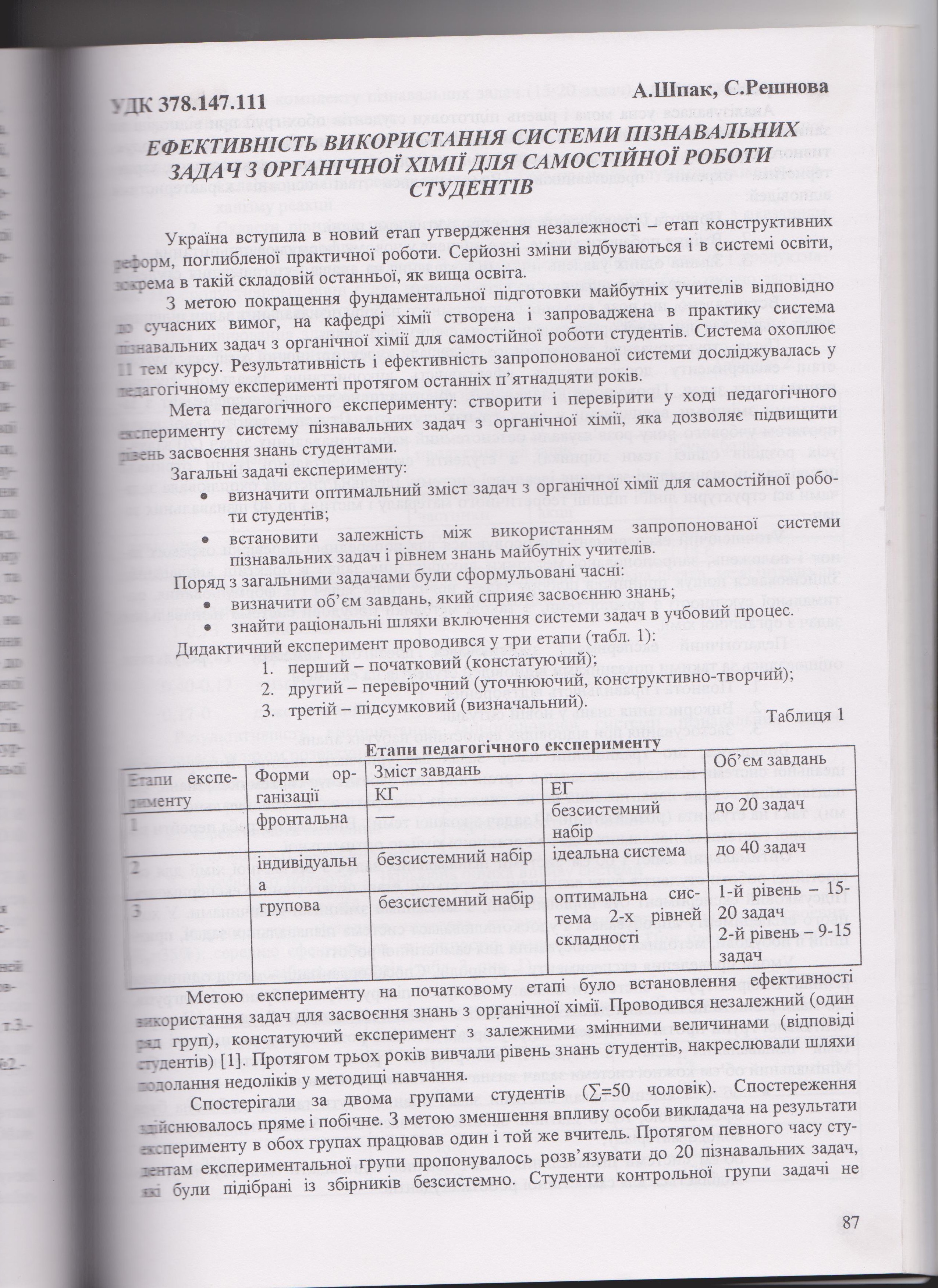 Решнова, С. Ф. Ефективність використання системи пізнавальних задач з органічної хімії для самостійної роботи студентів / А. Шпак, С. Ф. Решнова // Педагогічні науки : зб. наук. праць. – Херсон : ХДПУ, 2002. – Вип. 29. – С. 87-91.
