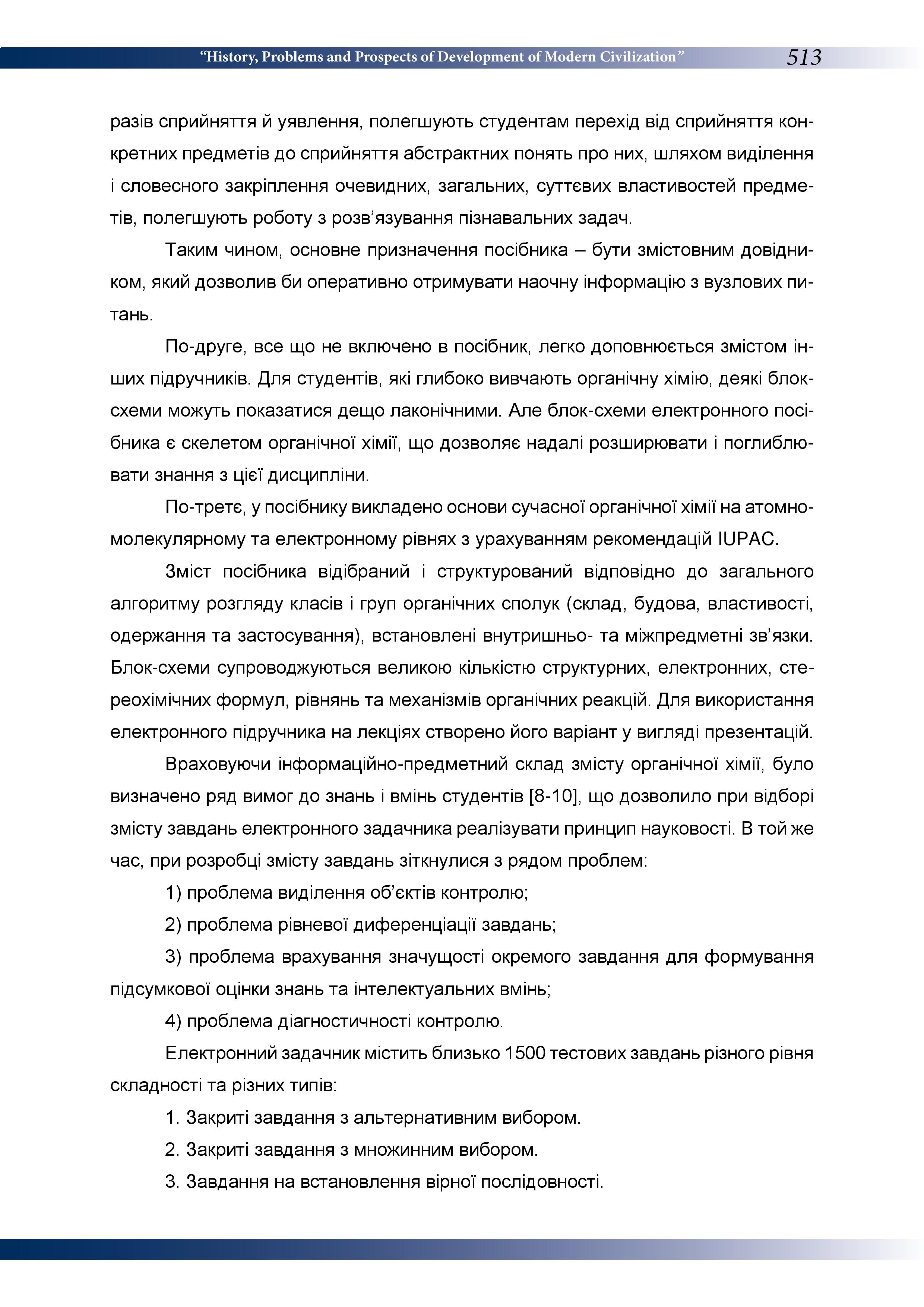 Rechytskyi, O. Development of the complex computer training program in organic chemistry / O. Rechytskyi, S. Reshnova, V. Varshevskyi // The XVII International Academic Congress "History, Problems and Prospects of Development of Modern Civilization" (Tokyo, Japan, 25-27 January 2016). – Papers and Commentaries.– Tokyo : Tokyo University Press. – V. 2. – P. 511-515.