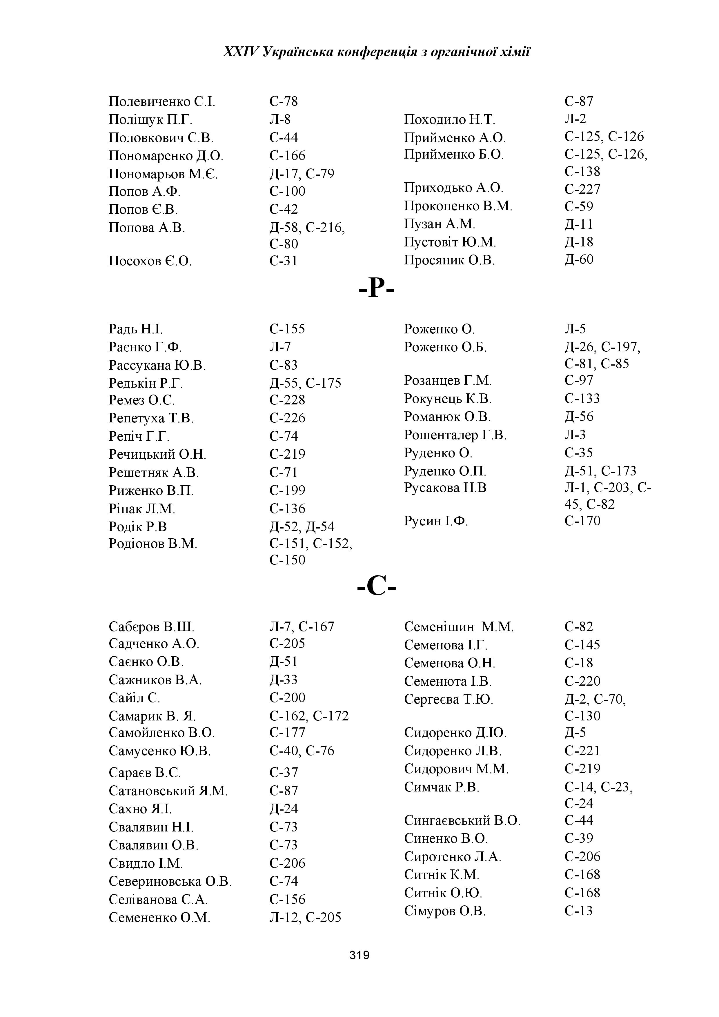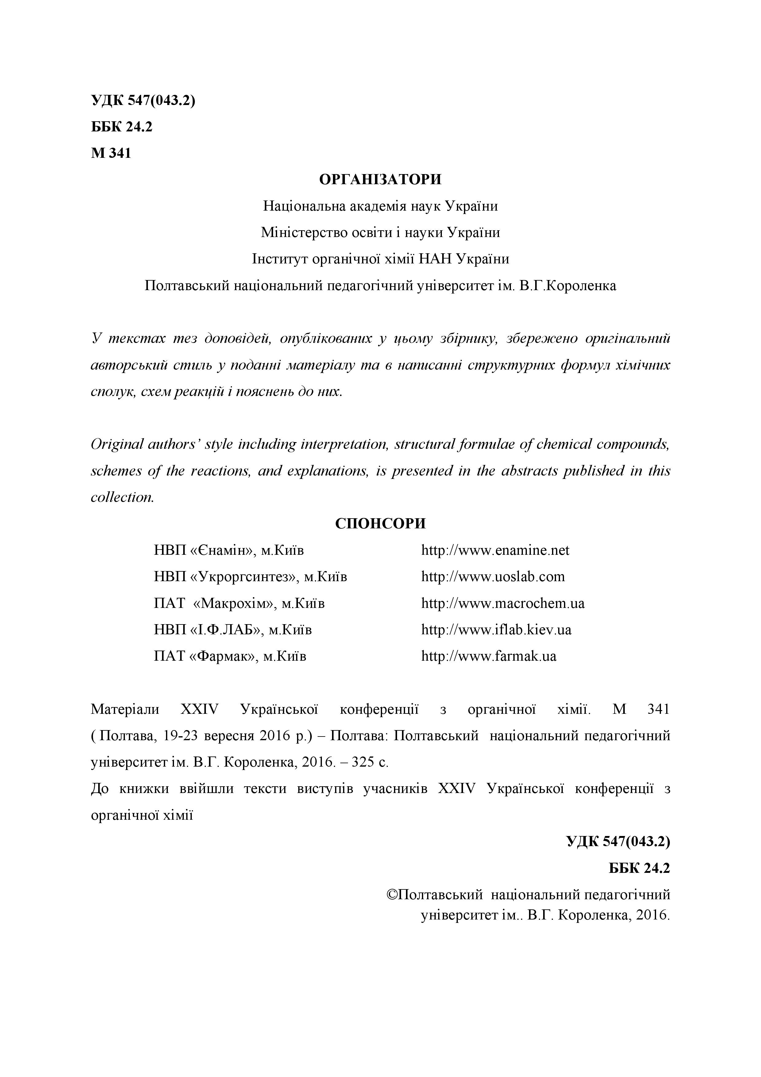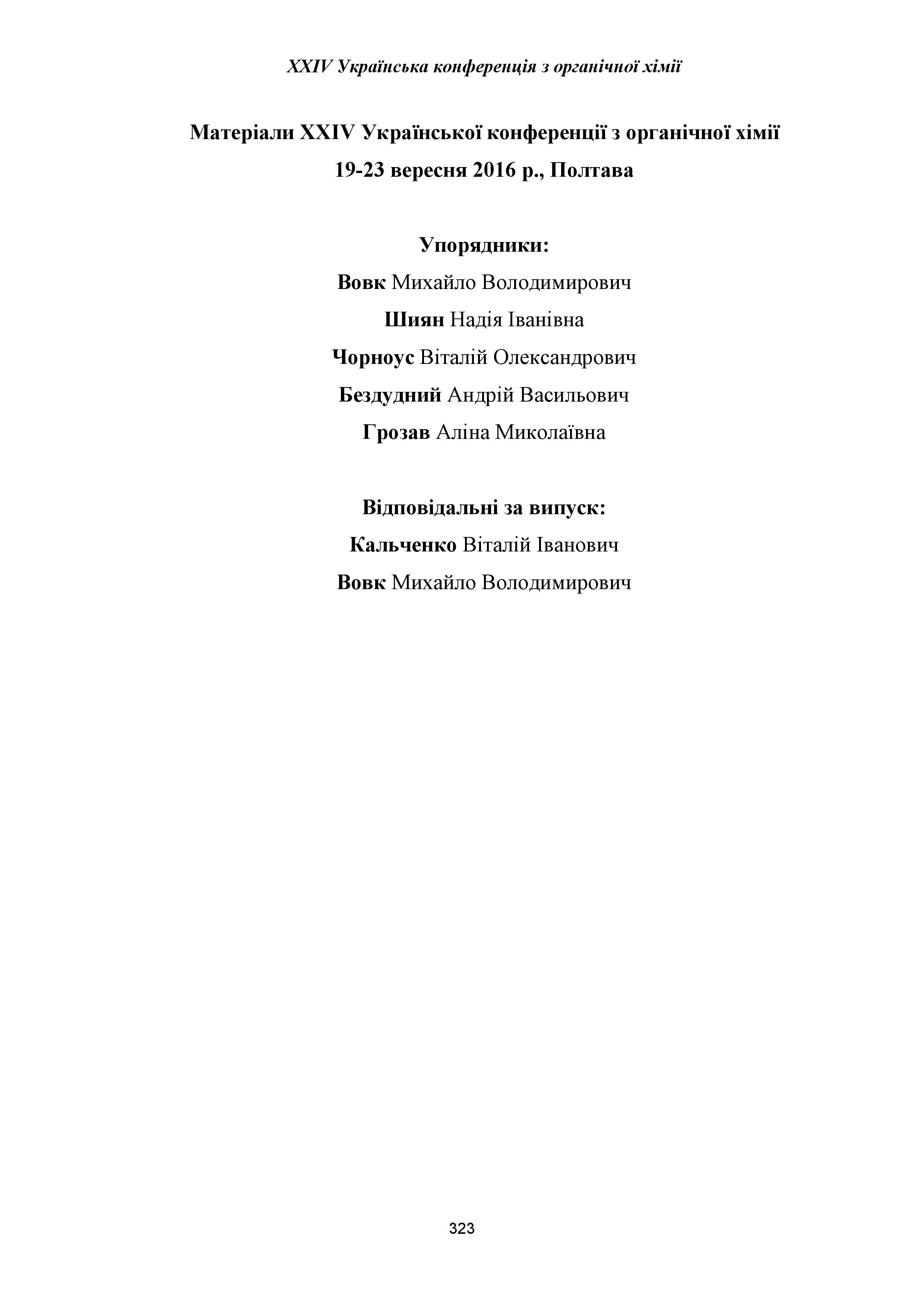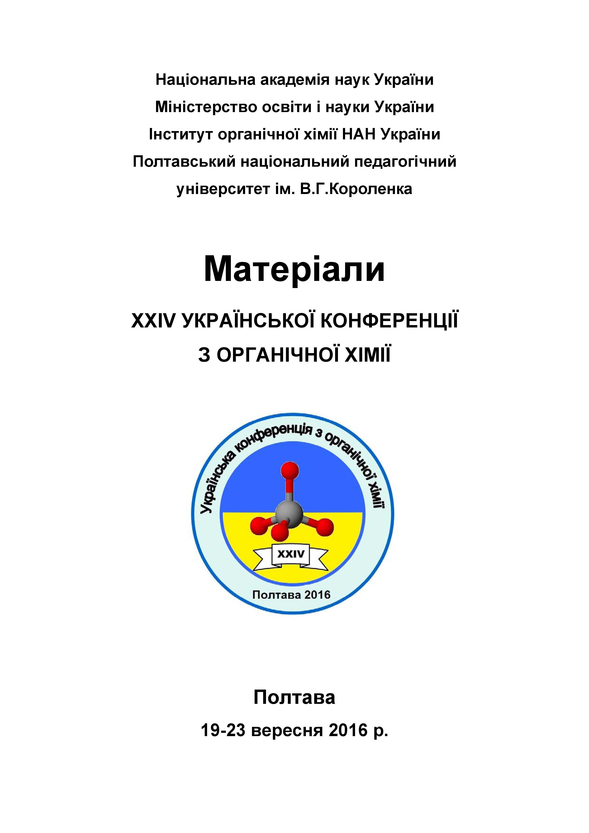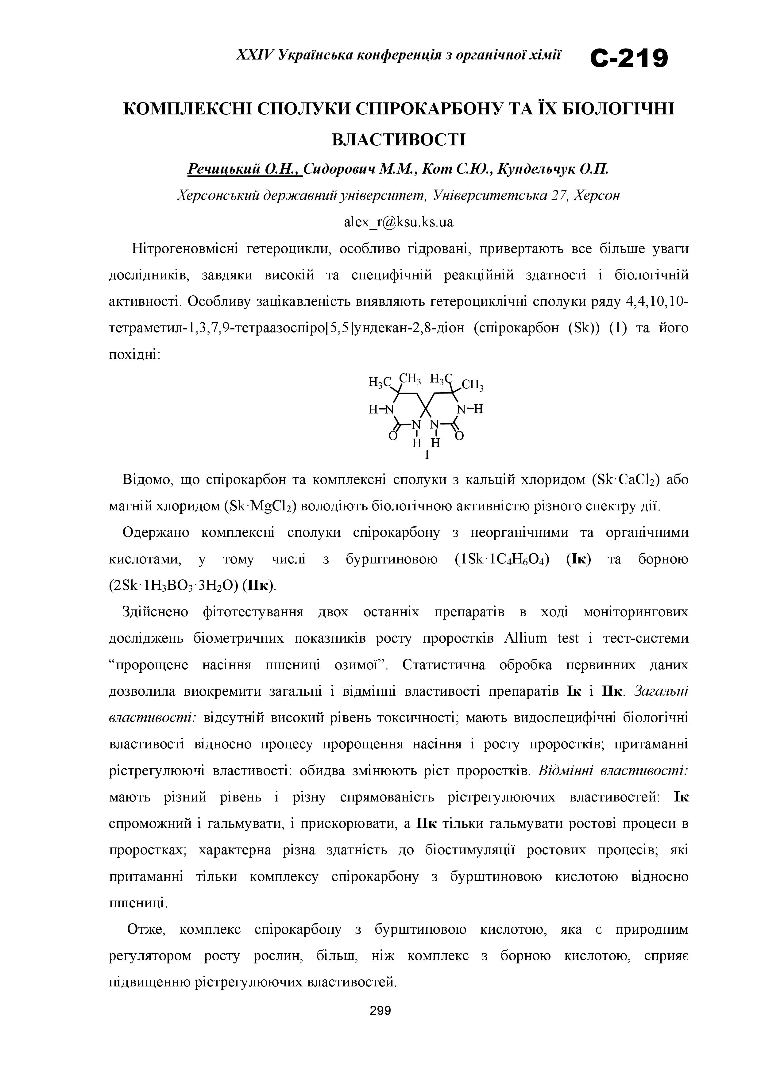 Речицький, О. Н. Комплексні сполуки спірокарбону та їх біологічні властивості / О. Н. Речицький, М. М. Сидорович, С. Ю. Кот, О. П. Кундельчук // Матер. XXIV Української конф. з органічної хімії (м. Полтава, 19-23 вересня 2016) / Полтавський нац. пед. ун-т ім. В. Г. Короленка. – Полтава : ПНПУ, 2016. – С. 299.