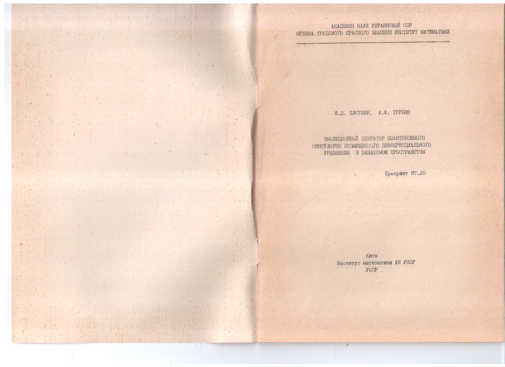 Плоткин, Я. Д. Эволюционный оператор неавтономного сингулярно возмущенного дифференциального уравнения в банаховом пространстве / Я. Д. Плоткин, А. Ф. Турбин. - Киев : Институт математики,1987. - 28 с.