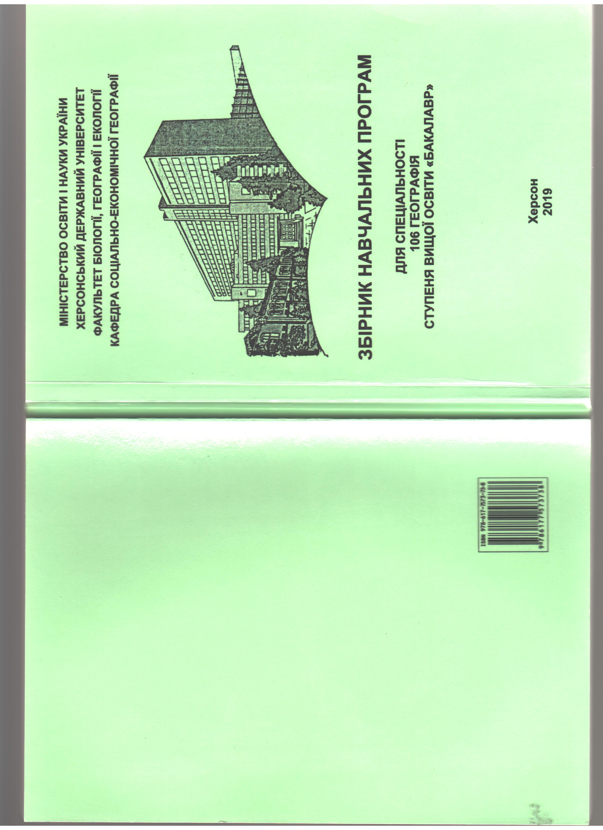 Збірник навчальних програм для спеціальності 106 Географія ступеня вищої освіти «Бакалавр». – Херсон : ФОП Вишемирський В. С., 2019. – 308 с.